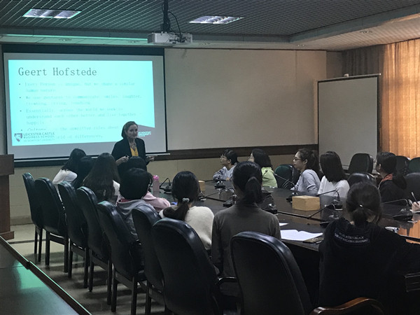 Julia Pointon教授为同学们讲解了中国文化与西方文化的相似与不同之处,加深了同学们对东西方文化的认识。同时,Julia教授每讲一个理论,就会举例子使之更加浅显易懂,并时不时提问与同学们进行互动。