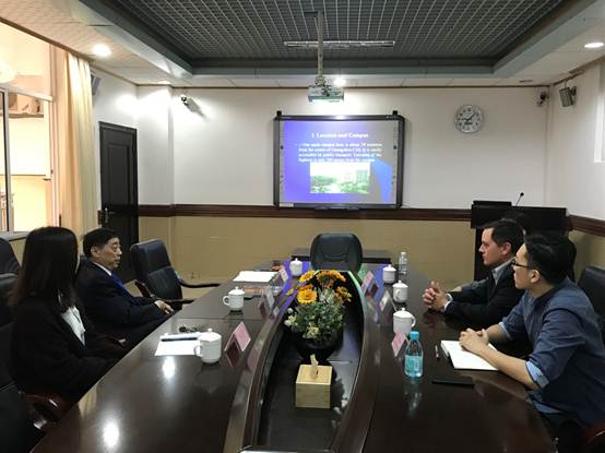 代表团对国际教育学院的热情接待表示感谢。迈克尔•米尔斯先生介绍了美国中西州立大学地理位置、本科及研究生的教学特色及课程设置情况。