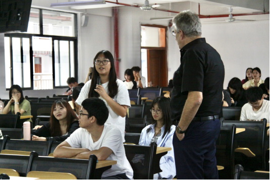 10月18日,来访我校的荷兰威登堡应用科学大学校长彼得•博德索尔(Peter Birdsall)为我校学生全英语讲授创新创业专题。讲座由国际教育学院和创新创业学院联合主办,国际教育学院院长梁学宏主持,外国语学院教师朱志鸿提供现场翻译。