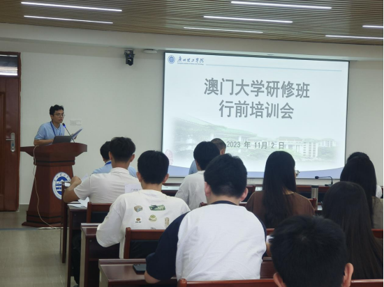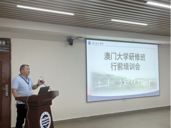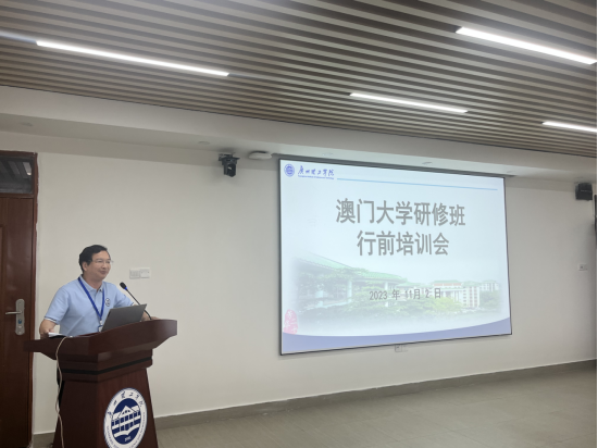11月2日下午,我校首个澳门大学研修班行前培训会在行政楼815举行,国际教育学院院长、港澳台事务办公室主任梁学宏主持。