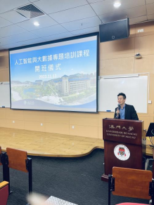 开班仪式上,澳门大学校董、持续进修中心主任刘丁己教授对广州理工学院学生来澳门大学访学表示热烈欢迎。刘教授说,澳门大学是一所背靠祖国、面向世界的世界顶尖的高等院校,具有国际化特色教学方式与一流师资水平。在这个快速发展的时代,人工智能与大数据是未来社会发展的重要学科,掌握人工智能与大数据的技术和知识,已经成为我们适应社会发展的必然选择。最后他希望同学们在未来几天学习中,能学有所成,满载而归。