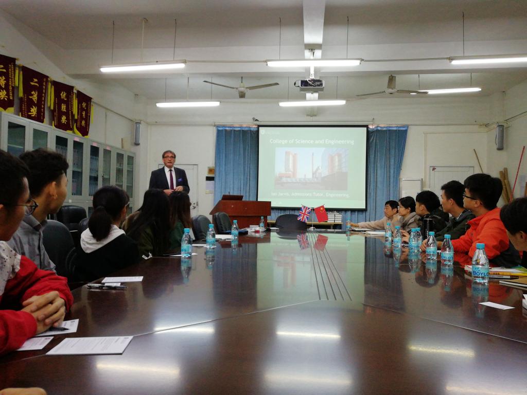 12月8日上午,国际教育学院举办了英国莱斯特大学天河学院学生见面会,莱斯特大学科学与工程学院国际交流招生负责人Ian Jarvis(伊安·贾维斯)先生为我校学生现场解读了相关留学事宜及报考条件和要求。